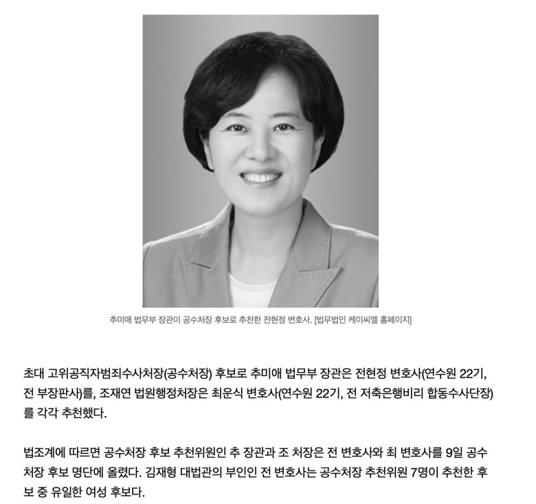 전현정 변호사 추미애 추천 공수처장 후보