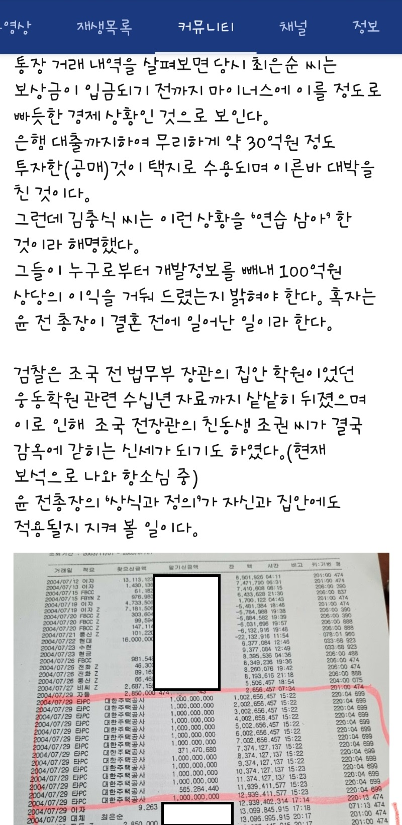 이어 “최씨는 장재리 일대 땅을 대략 30억원대에 취득한 것으로 확인됐다”며 “최씨의 대리인 김씨는 ‘오래 전 일이라 정확한 금액은 기억나지 않지만, 대략 30억대 초반에 낙찰을 받았다’고 했다”고 덧붙였다.