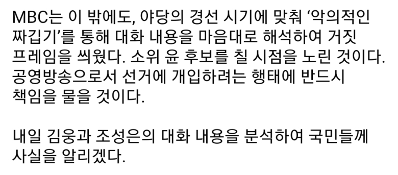 <MBC와 조성은 發 선거공작용 거짓 프레임이 또 시작됐다. 녹취록 전문을 공개하라.>