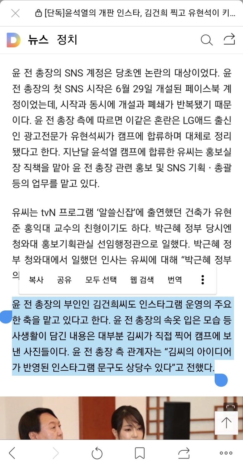 윤석열 인스타 올린 핵심 실무자 알고보니 김건희