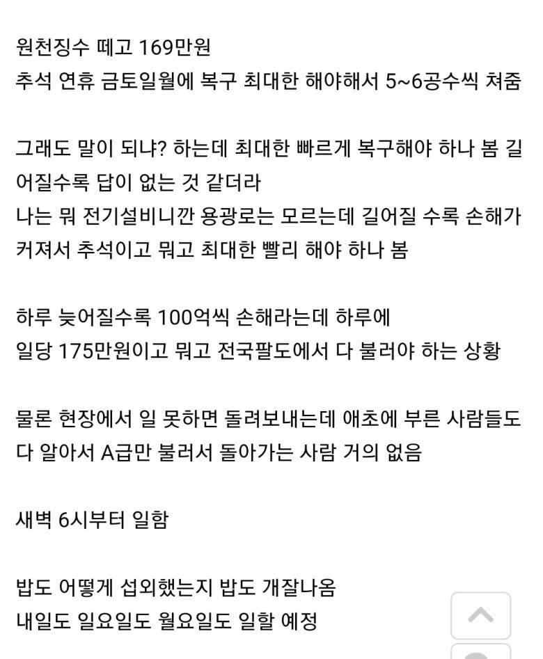 하루에 백억이상 손해 나는거라서 차라리 돈을 몽땅 주더라도 복구시간 몇일이라도 줄이는게 이득...