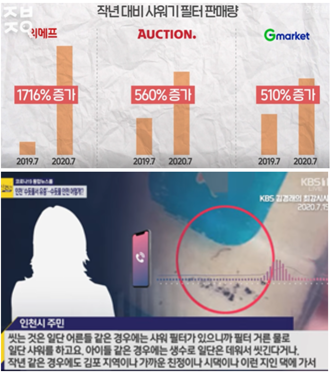몇 년 전 인천에서 시작된 수돗물 유충 사태가 전국적으로 확산되면서 샤워기필터의 판매량이 해마다 급증하고있습니다. 그러다보니 각종 샤워기 필터 제품이 홈쇼핑 방송에서 매진 행렬 중이고 온라인에서도 없어서 못사는 지경입니다.