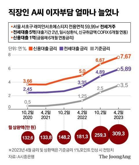 전세대출 6억 이자 133만→259만원..월급 남는 게 없다